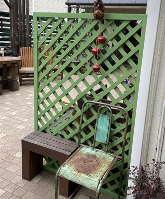 ペイントは水性の若草色。組んでしまってから塗るのはなかなか大変。(と、いつも同じ反省。) |