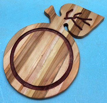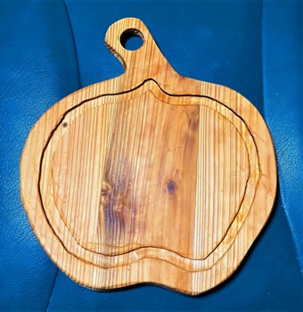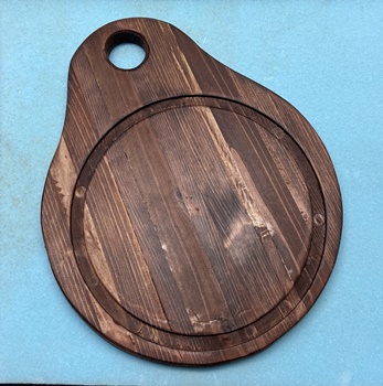 (右上) 円溝とフリーハンドの溝で模様を入れたテーブルボード。裏側はまな板でもOK。(水洗いはNo×)