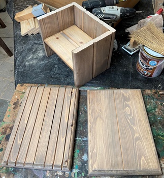 底板は中の2枚が表面化粧があってペイント乗らず。サッとひとなでして止めとく。