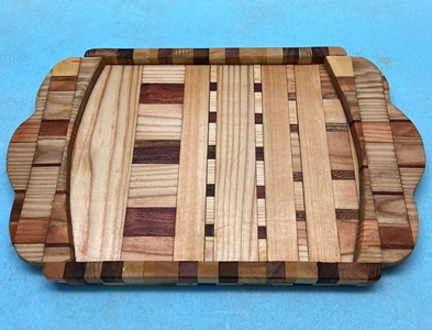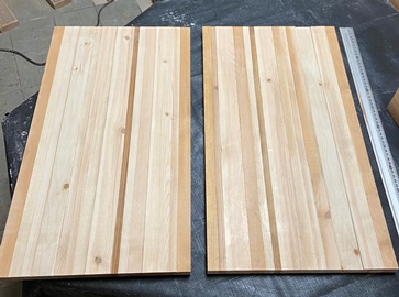 | 19mm厚、32cm*60cmの組み接ぎ模様板を2枚作ってあったので、木のトレイを製作。 |