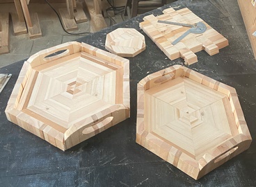 色味のメリハリが少ないので、正三角形の組み接ぎで今回のは六角トレイにしてみた。
