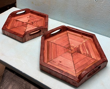 実用的な六角トレイになった。余った板きれも寄せて後で何かに使おうかと。(^^)