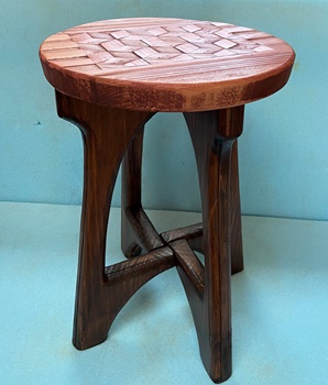 先月に作ってあった円形カットした3cm厚の模様板、やっぱりスツールで使うことに。