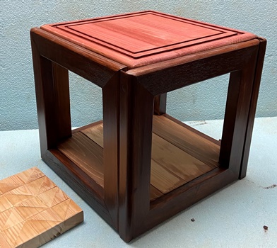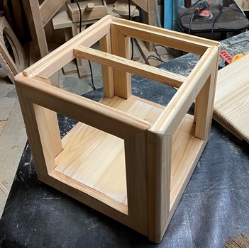| 25mm厚、30cm四方の額フレーム、三角柱も考えたけど、無難に実用的なサイコロ状で。 |