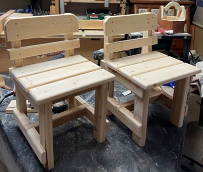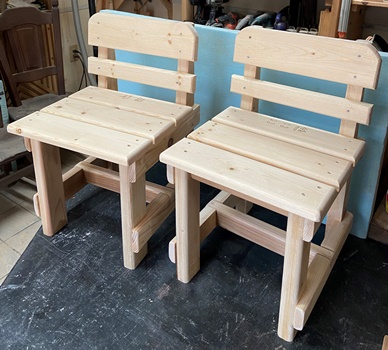孫たちの外遊び用に、長く使えそうな子どもイスを2つ。