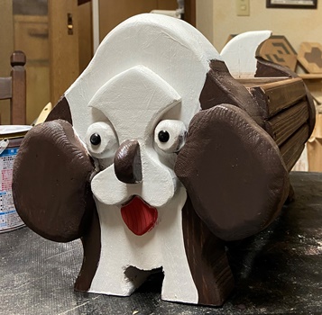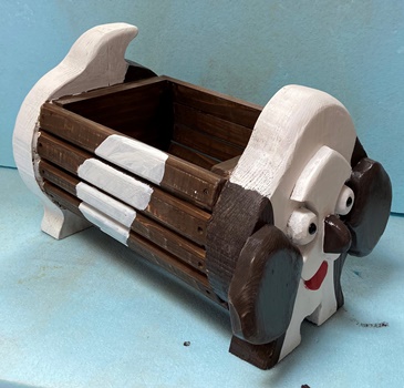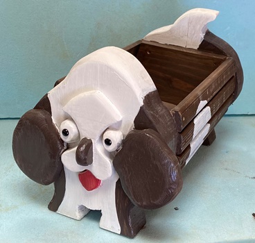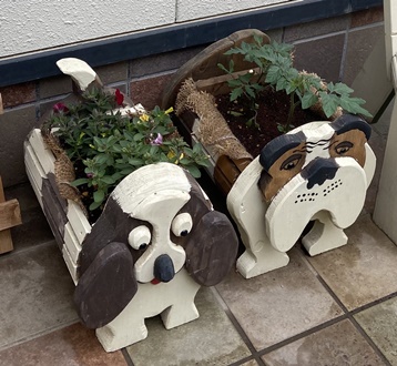 | 樽状のハコはこれまでにも作ったワンちゃんで。 やっぱ、プランターはイヌ型がしっくりくるみたいです。 |