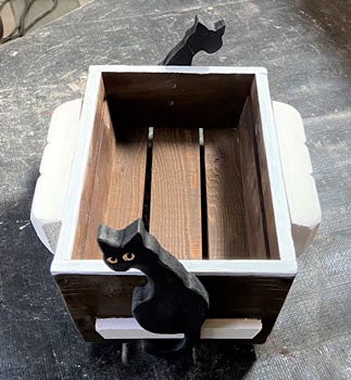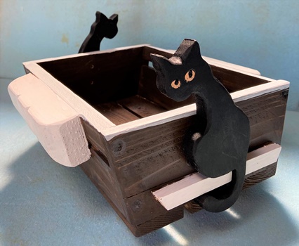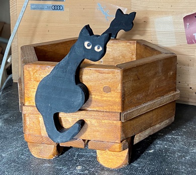| 六角形ハコのは、ネコのシルエットを貼り付ける。 小さい子はあんまり喜ばないかも知れない。(^^;) |