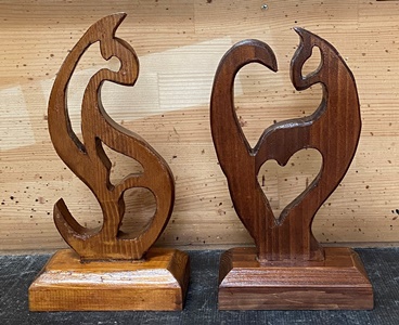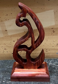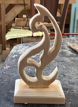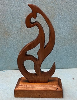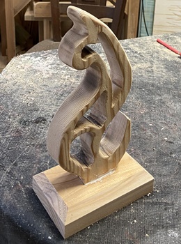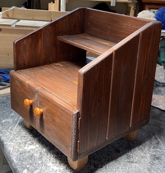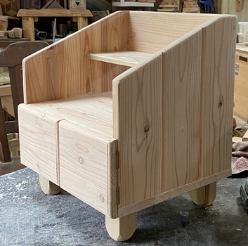 3cm厚の杉板端材があったので、ジグソーで切り出せるかなぁと思って始めてみたが、案外とやれてしまった。(^^) サイズは前にやったのより一回り大きく、さすがに厚みがある。 削って磨いて削って磨いて、 着色オイルとニス仕上げ。 (形は前のとおんなじですが。) |