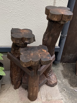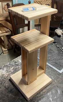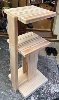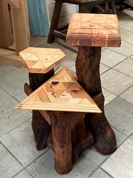 ネットで見て、形がかっこいいのでやってみたサイドテーブル。天板の高さ40cmと60cm。 |