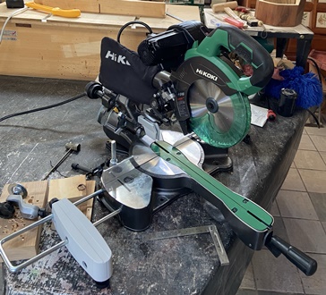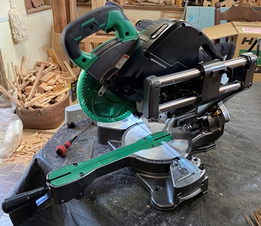| 昔の同僚の皆さんから記念に..と戴いたスライド丸鋸 HiKOKI C7RSHD 。 (プロ仕様の緑のHiKOKI) 自分などにはかなりのオーバースペックなんですが、使って楽しくなるすごい道具です。(^_^)/~ |