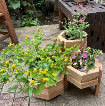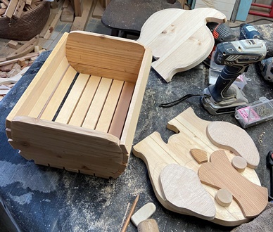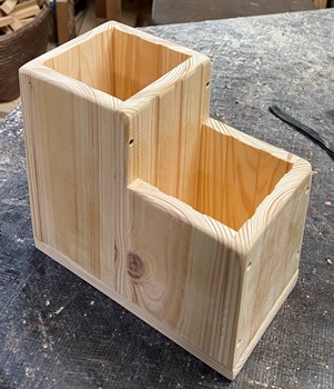 _/_/_/ おまけ _/_/_/ 台所の箸さしが孫たちの小さい箸などで混雑していたので、あっさりとした箸さしを作る。 1cm厚のヒノキを活用。 右側の低い方がお子さま用、左が大人用。 磨きだけを丁寧にやって、あとは単純にチャチャッと組んだ箸さしなのだけど、とっても役立ってる。(^^ゞ