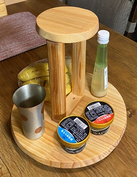 前にお友達からいただいた書家と陶芸家のコラボ時計、壁掛けが基本のようなのだけど、かなりの重さがあるので壁掛けは止めて、置き台を作って飾ることにした。 時計の円弧(木製部分)がぴったりはまるようにしてあるので、安定感は十分。 ただ、時計の針を孫たちが指でくるくる動かすのには困っている。(*_*)