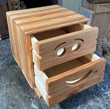 笑う抽斗、孫たちに作ってやったけど、お部屋を整理しないと置き場所がないようで...。(^^;) |