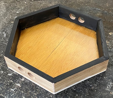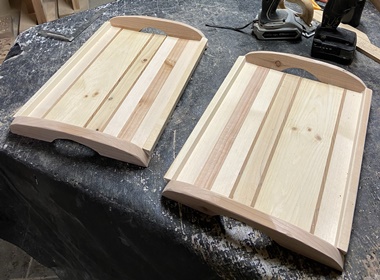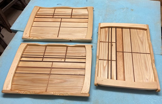 木のトレー、すぐになくなってしまうので、2つほど作っておく。縦横28cm*38cmで同じ模様。