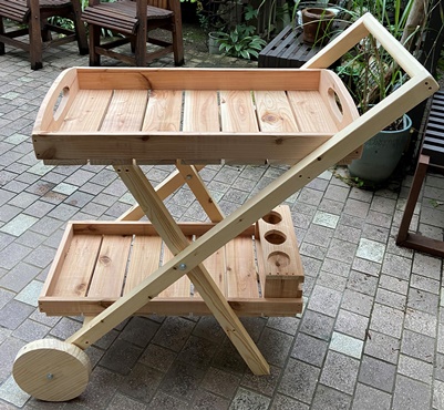 お友だちから、「大家族で食事するときなどに、テーブルの傍に背の低いテーブルがあったら...」のリクエストで製作。