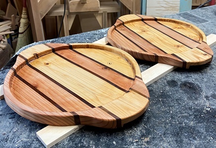底板厚が15mmでこれまでのよりちょっと厚手。木のトレーは手土産に喜んでもらってます。(^^ゞ |