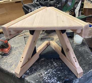 Z形脚は45°組み、天板は1辺33cmの正三角形を60°開きで挟み込んでみた。