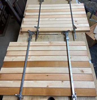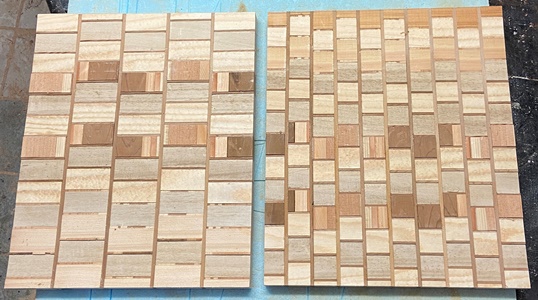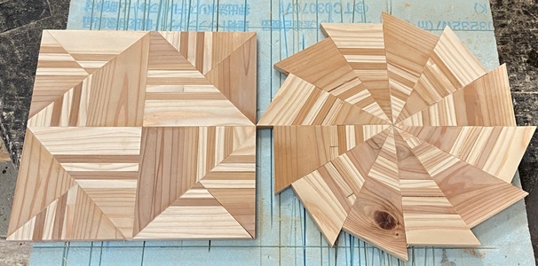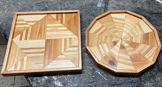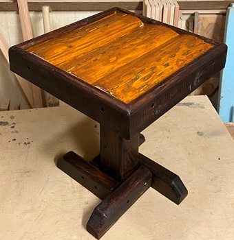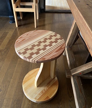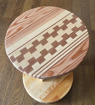 18mm厚で接ぎ合わせた模様板があったので、 これを使ってテーブルの天板に。 |
