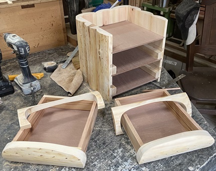 | 深底トレーを3段作る。深さ7.2cm、縦横24*33cmでA4サイズが楽々入るサイズ。 久しぶりにあられ組みでハコを組んだけど、色味の違いがないと目立たない。 |