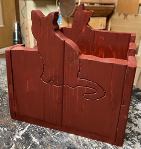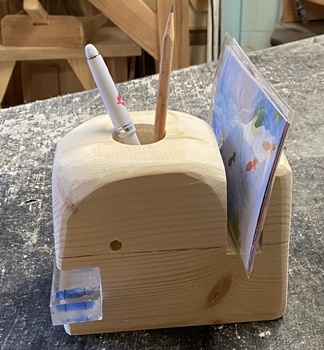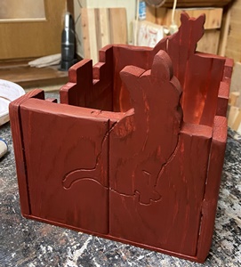 中の仕切りをこれまでのよりも深くしてみた。 黒ネコでやってみようかとも思ったけど、 少量残っていた着色オイルで仕上げる。 動物シルエット小物入れ、もらっていってくれる人たちがいて、ホッと一安心。