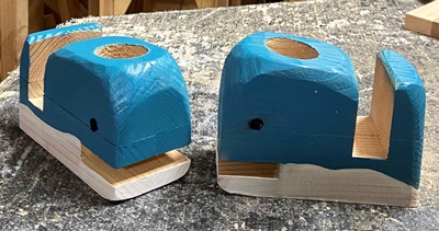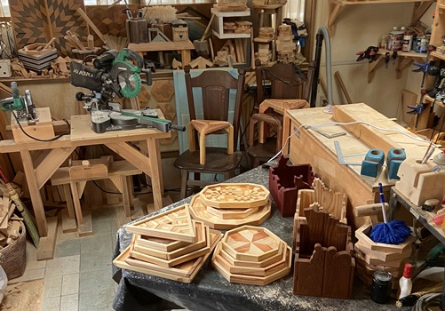 トレーなどの小物を欲しいと言ってくれてる方々が来訪するので、いくつか並べておいた。 作業場もこんな時にはササッときれい?にして。 喜ばれてたくさん持って行ってもらったけど、テーブルソーの上の小クジラは流石にもらい手なし..でした。(*_*)