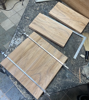 "..など"にこれをのせるのは3度目? (^^) 10mm厚の杉ハメ板が材置き場の下の方から出てきたので。 |