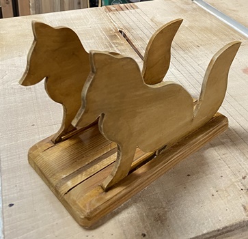 | 台座に乗せて、わりとお洒落にまとまった。飾り物でもあるのでニス仕上げ。 | |