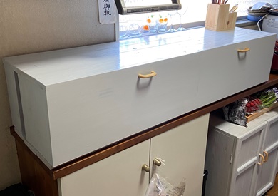 | スッキリときれいに収まった。ただこれだけの大きさになると、材もあるものだけでは不足する。(T_T) 前の週から、キッチンシリーズになってます。^^ |