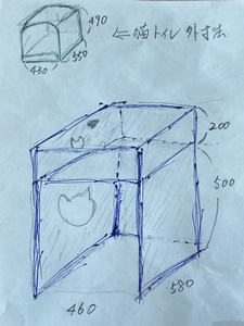水性チークの2度塗りで仕上げ。 下の空間、底板があったらガッチリしたのだろうけど、猫トイレの出し入れと清潔さを考えると、底板はやはりなし。 喜んでくれたようで良かったです。(^^) |