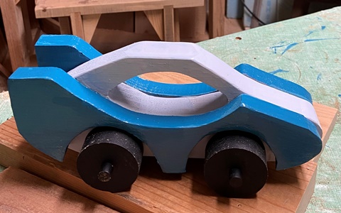 | "など2" ずっと前に作ったおもちゃのクルマ、近所の男の子にあげたらとても喜んでくれた。 滑り台から転がして遊んでたら壊れてしまった...と悲しそうだったので、久しぶりにもうひとつ作る。 面白いアイディアが沸かなかったので、前のと同じようなつくりの...スポーツカー!! ^^ ..速いぞ。 |
