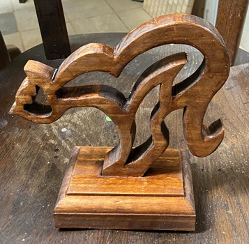 | 透かし彫りのネコオブジェ。これも飾りに、前にやったネコ2匹?とあわせて並べてます。 |
