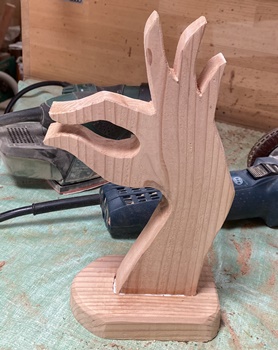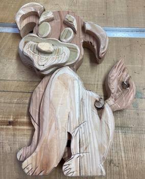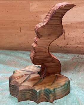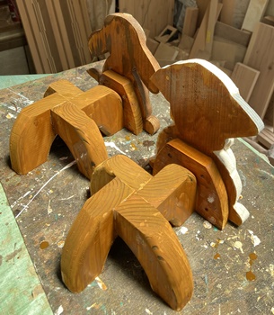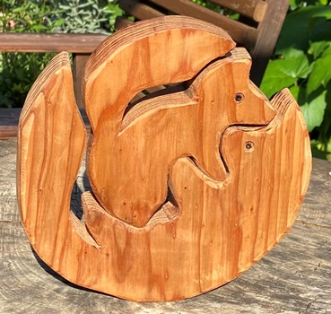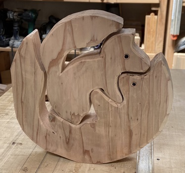 | 2つめはキツネの親子。3cm厚板なのでちゃんと立つけど、ゆらゆらさせると子ギツネが落っこちる。 |