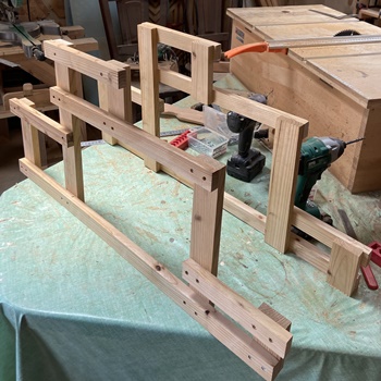 | 三寸角、四寸角の角材端材を18mm厚でカットした板材で骨組み。 |