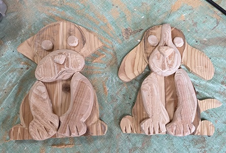 | 後ろから眺めるとちょっと笑える。 でも、前面だけの子犬も可愛いし、案外使ってもらえるかも。(^^ゞ |