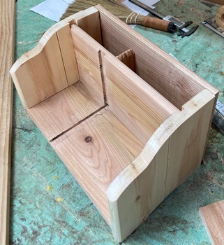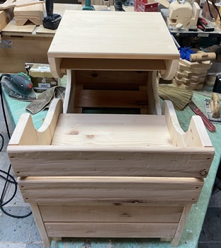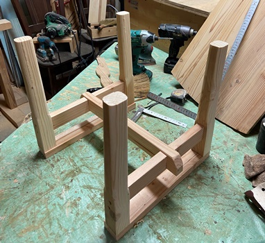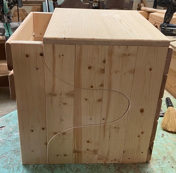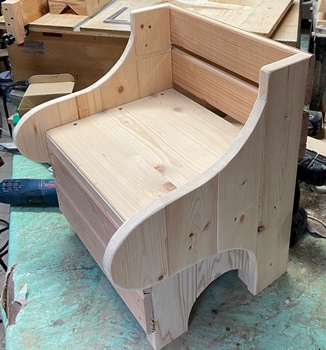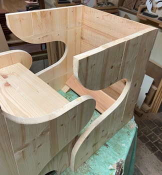 側板の部分に強度が必要で、19mm厚板(SPF材)に補強を入れたりしてがっちりさせる。 |