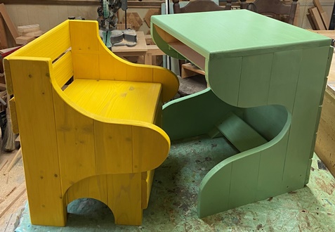 子ども用のイスと机が一体になった組み型イス机、作ってみた。 |