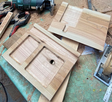 | 2つめのDock は溝掘って組み木で。 ビスは裏板の押さえだけ。 |