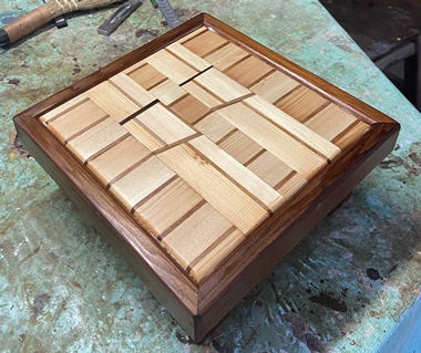 トレイ お盆じゃなく、今回のはそのまんま トレイ。 持ち運びの用途よりは、小物などそのまま置いておけるように。 外枠を額縁囲みで3重にしてみた。 7mm厚で3枚。5mm厚で4枚囲みでやっても格好がいいかも知れない。