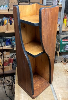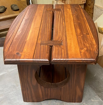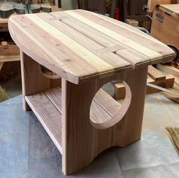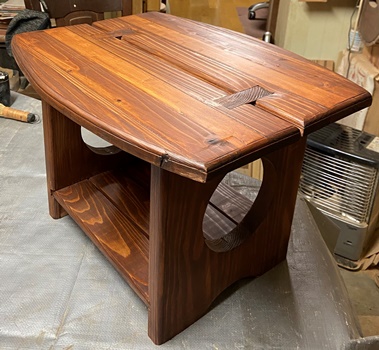 チーク色で塗って、表面をニス仕上げ。何かを乗せたらちょっとした飾り台になる。 |