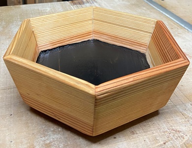楕円カットした蓋の裏側溝は約30mm幅 17mm深さで掘る。あとは削って磨いて削って磨いて。 |