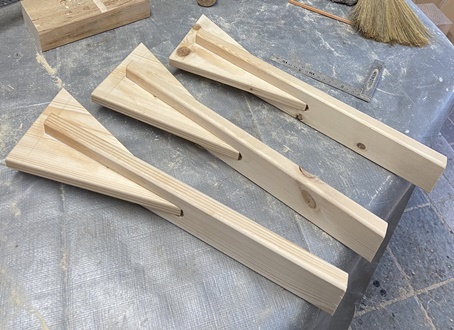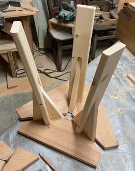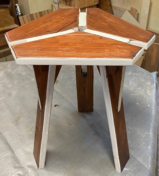 三角形を挟んだ脚の形が面白そうなのでやってみた。脚は外に10°開くようにカット。 |