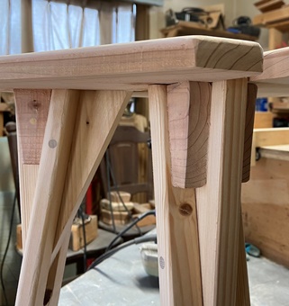 デザイン的にはない方がいいのだろうけど、天板裏、脚の外側に補強板を噛ませる。 |