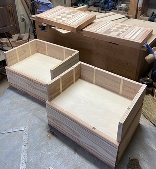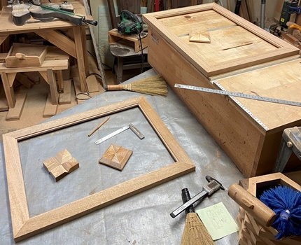 仕上げはオイルフィニッシュ。天板(蓋)もきれいな色合いが出せた。 |