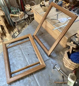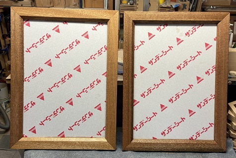 縦横36.5*52cmのスケッチを収める額を2つ。22mm厚のラワン材で46.1*61.6cmの額にする。
