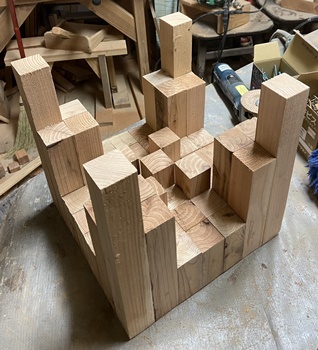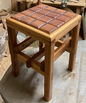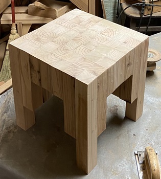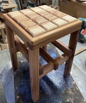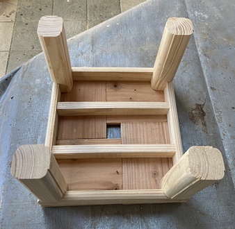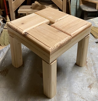 およそ3年くらい前に2つほど作った垂木縦並べのイス(スツールor鉢おき?)、垂木端材が余っていたので久しぶりにちょっとやってみた。