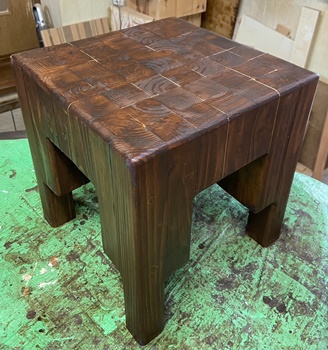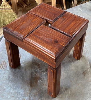 20cmの脚に18mm厚の杉板乗せて、25cm角、21.8cm高のシンプルな花台。 |