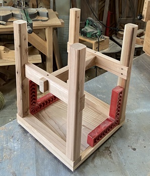 脚は切り欠き入れて格好良く組みたかったけど、最後は安定性重視で補助木を足す。