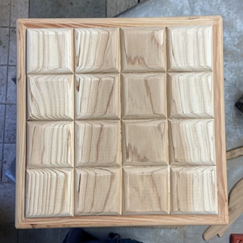 3cm厚 6cm角でカットした板をブロック状に並べて天板にする。