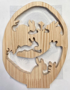 しばらくやってなかった糸鋸で、透かし彫りのオブジェを作ってみようと始めたんでしたが..。 |