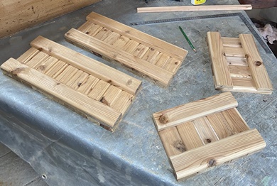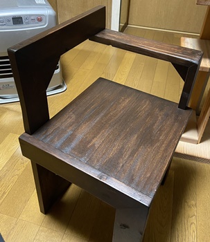 | 防腐塗料を塗り込んだまま、色は付けずに実用へ。 雨風に晒されたままでの使用で、ガッチリ作ってあれば多少?の傷は愛嬌ということにする。 |